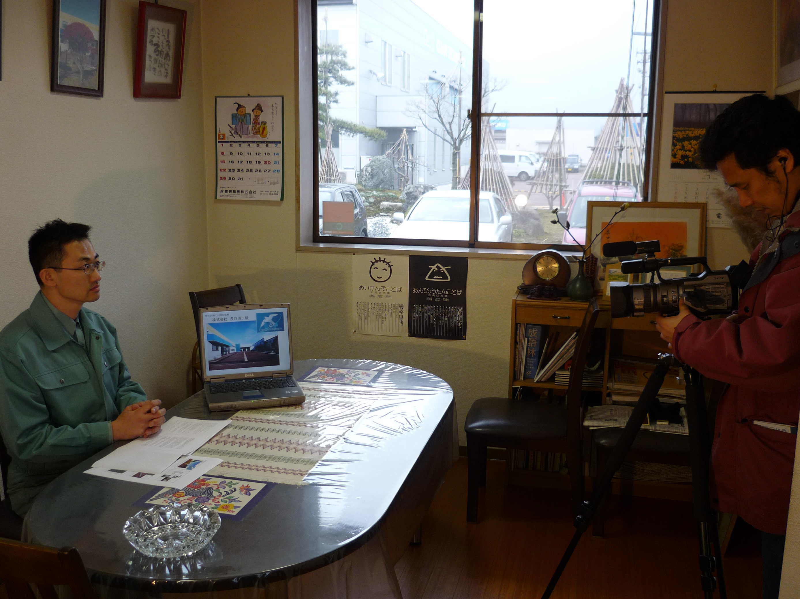 午後からの打ち合わせから撮影までおよそ半日。熱心に休憩もほとんどないまま撮影していただきました。工場外観撮影、事務所内でのインタビュー、工場内での作業風景の撮影とたいへんな工程だったと思いますが、監督は常に穏やかに真剣に取り組んでいらっしゃいました。頭が下がる思いです。