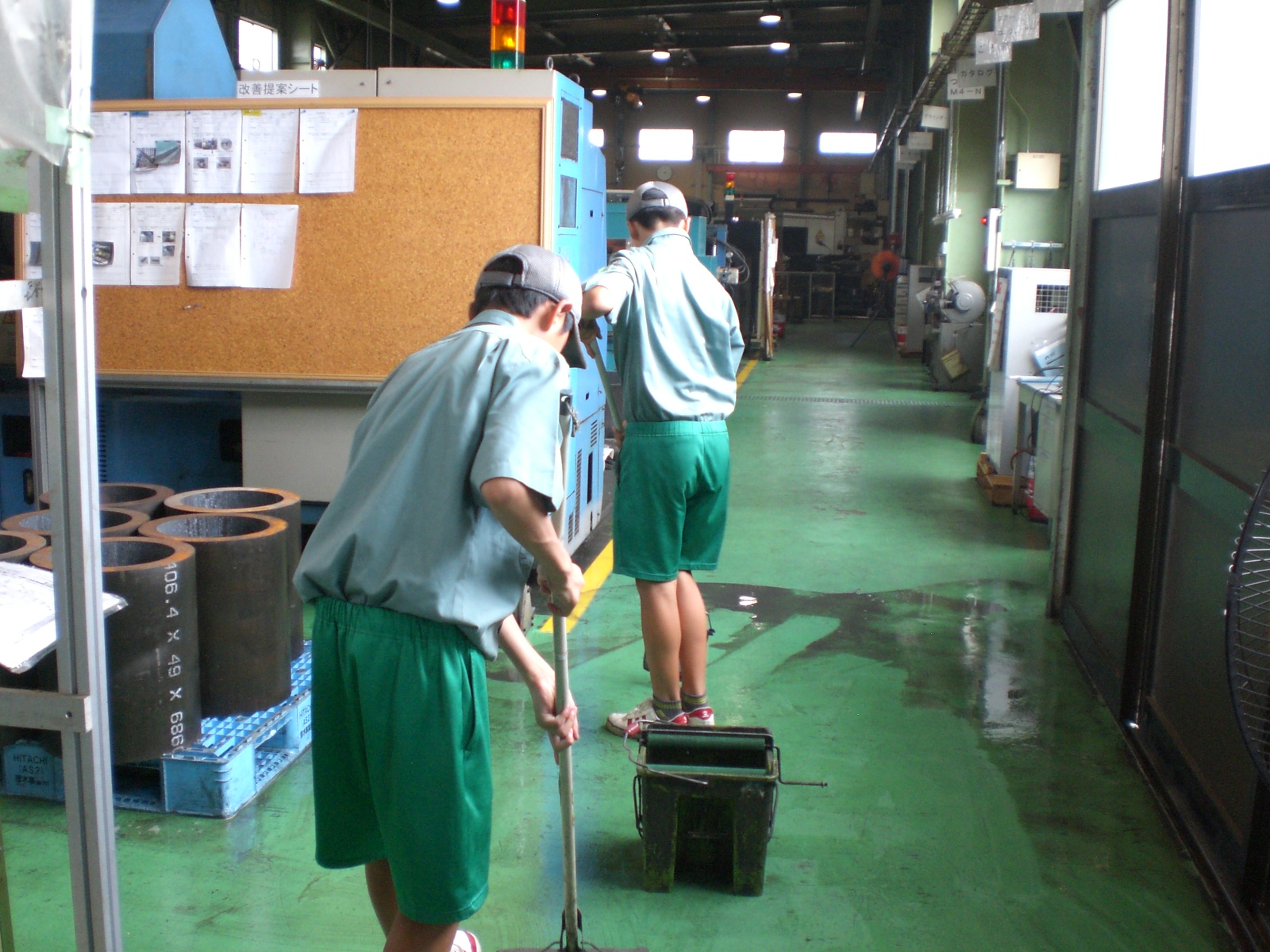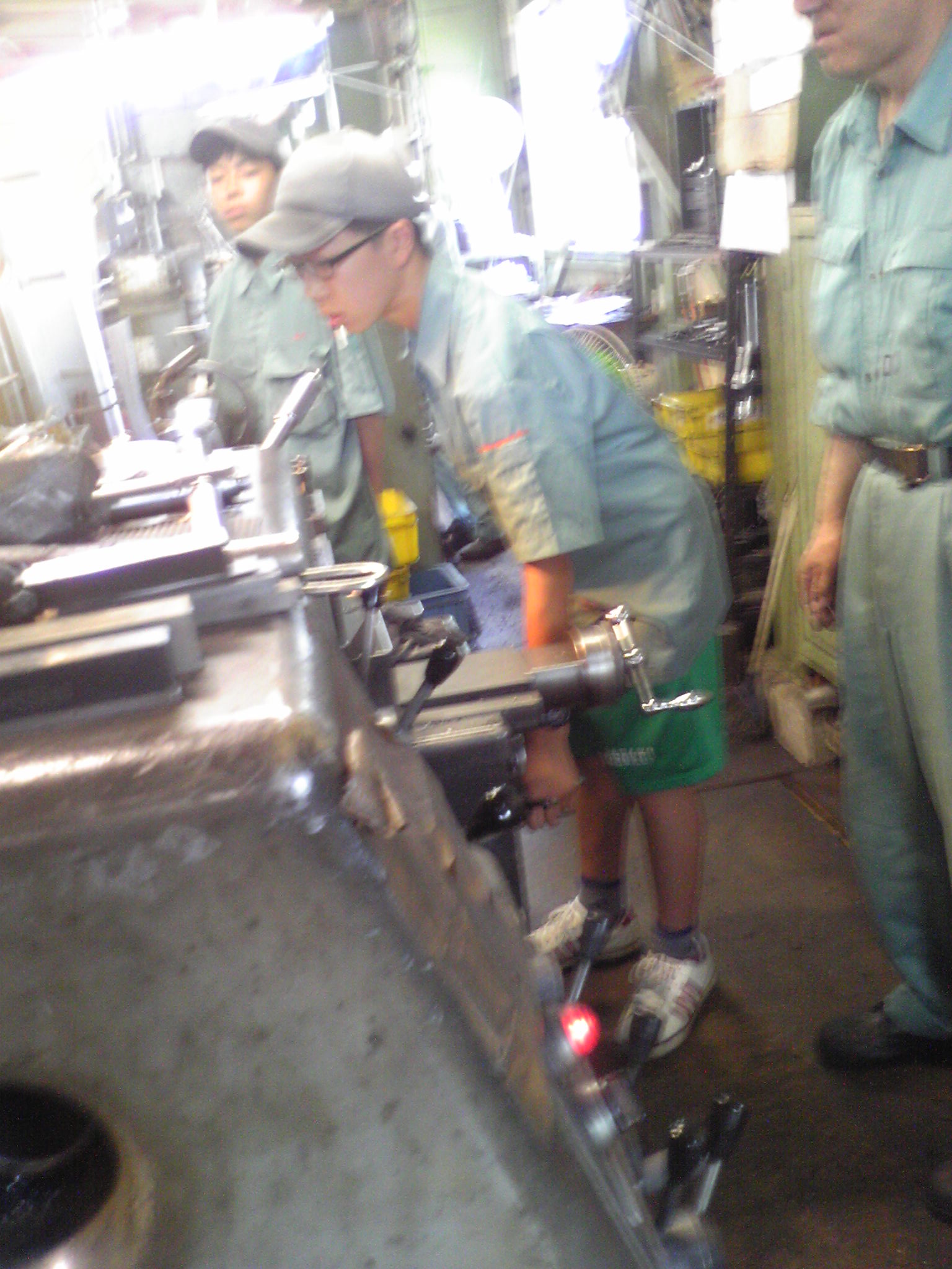 今年も中学生の職場体験が行なわれました。 初日に会社に着く直前、大雨に当たりビショビショに濡れての到着でした。 古い作業着を着てもらい職場体験をしました。 とても元気ではっきりとした受け答えができる生徒さんでした。 ものづくりに興味があるという事、いい経験になってくれれば幸いです。 床掃除と、旋盤を使ってのコマ作り、他社も含めた工場見学を行ないました。