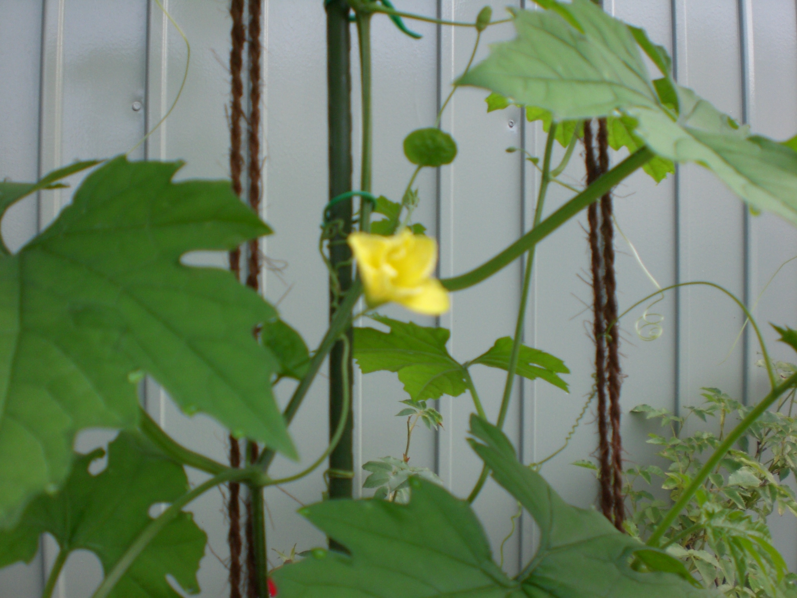 先日の朝顔の開花に続き、ゴーヤが咲きました。