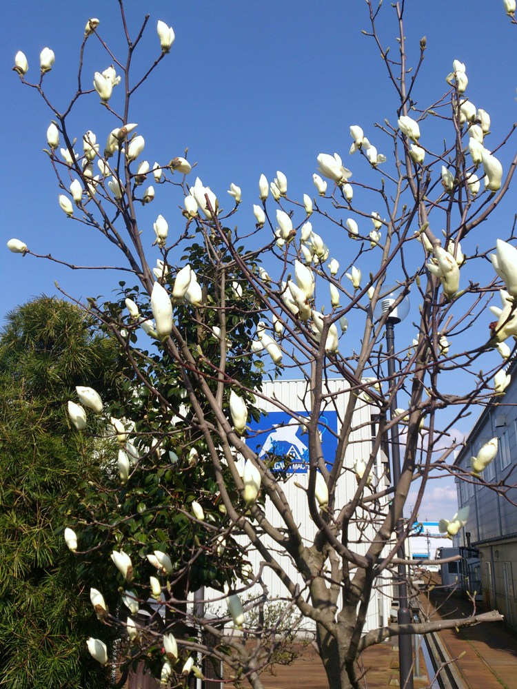 日に日に暖かくなって我が社の「日暮の庭」も春らしくなりました。 モクレンの花の白さに春の訪れのワクワクした落ち着かない気持ちと、暖かな日差しを見ながら感じる穏やかさという矛盾したような二つの気持ちを感じるのはなるのは私だけでしょうか。
